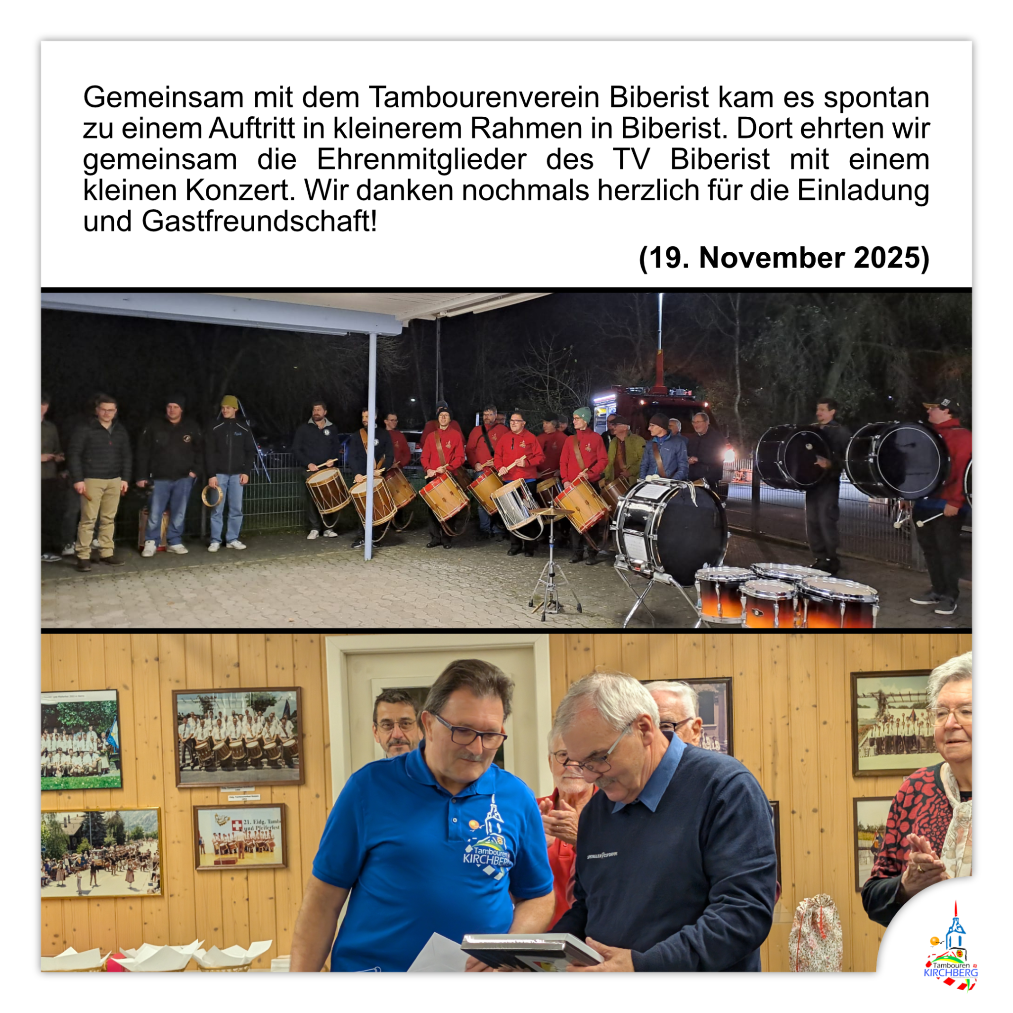 - ✅ Wir heissen nun offiziell «Tambouren Kirchberg», nicht mehr «Tambourenverein Kirchberg».